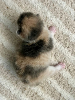 Die kleine Felicette wollte als letzte in einer unmöglichen Position auf die Welt kommen, was mich in einige Sorgen gestürzt hat. Umso glücklicher bin ich, dass sie sich ganz prima entwickelt und zuckersüß ist. SIe ist die Namensvetterin der ersten Katze im Weltraum.