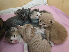 Nun sind schon alle Augen geöffnet, und die Kleinen beginnen miteinander zu spielen. Alle wachsen und gedeihen sehr gut!
