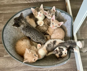 Unsere F-linge mit 6 Wochen - eine wilde Bande aus 6 verschiedenen kleinen Persönlichkeiten.